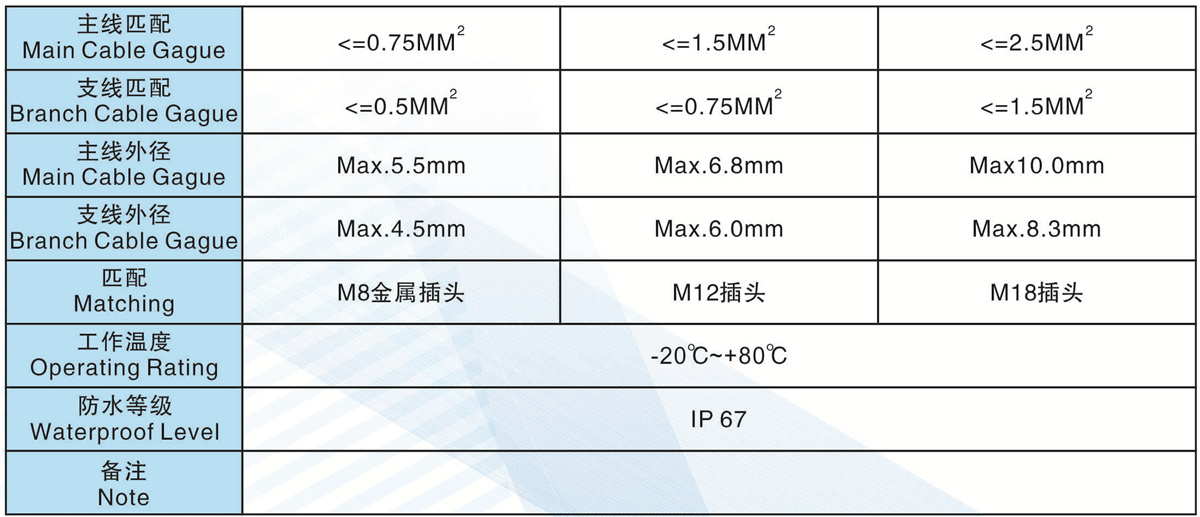 支線匹配(Branch Cable Gague):<=0.5MM2